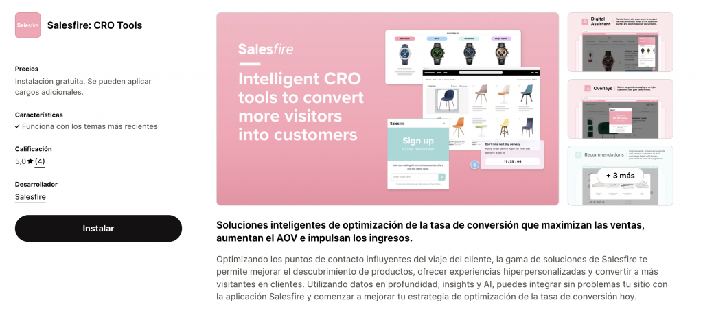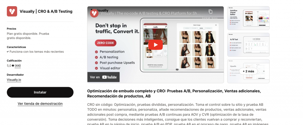 Con esta aplicación podrás realizar la optimización de tu embudo completo. Realizando Test A/B, personalización, crear upsells, y recomendaciones de productos. Puedes aplicar CRO en tu tienda de Shopify sin utilizar código y sin perjudicar la velocidad de carga de tu tienda. Esta app dispone de un plan gratuito.