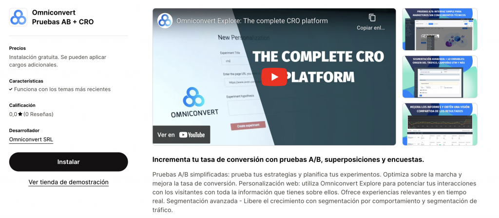 Omniconvert puede ser una de las aplicaciones de Shopify para hacer CRO en tu ecommerce más completas. Con esta app puedes incrementar la tasa de conversión mediantes test A/B y encuestas.