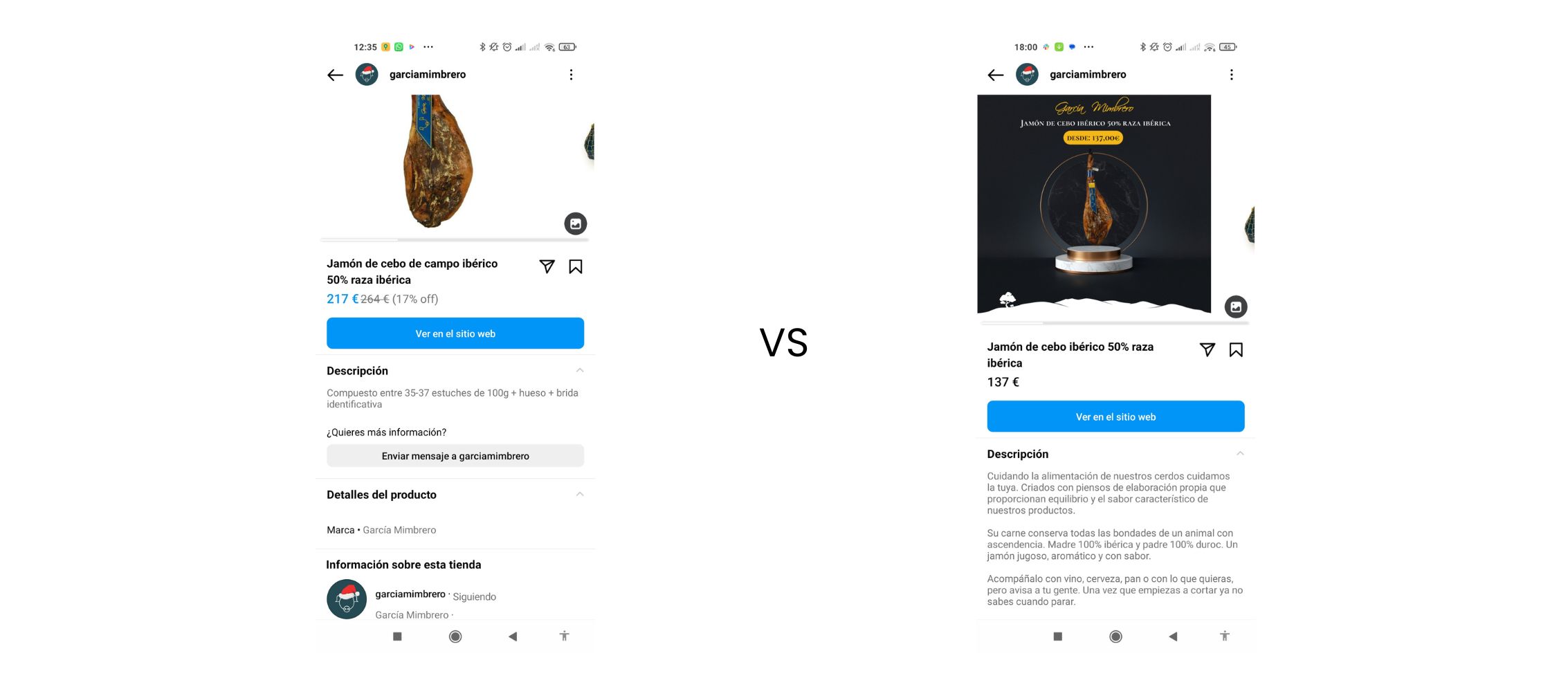 Una vez en esta sección veremos múltiples campos que podremos optimizar. Y el primero de ellos será la imagen. Veamos con un ejemplo la diferencia entre un producto antes y después de la optimización de imagen.