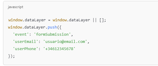 Cuando un cliente realiza una conversión en tu sitio web, es posible que recopiles datos propios como su correo electrónico, nombre, dirección postal o número de teléfono.