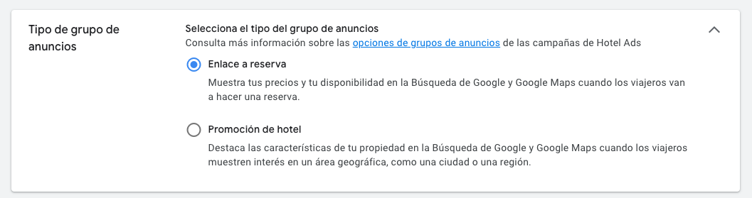 Dentro de las campañas de hoteles de Google Ads puedes elegir entre 2 tipos de anuncios: