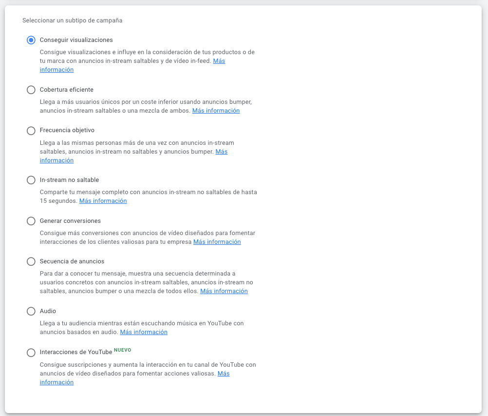 Vamos a hacer un repaso a fondo sobre los subtipos de campañas que existen en Youtube y cuándo y por qué usar cada uno:
