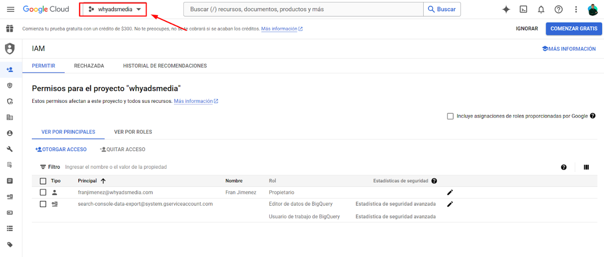 • BigQuery no es gratuito. Para vincular tu cuenta de GSC, necesitas crear un proyecto en Google Cloud y asociar una tarjeta bancaria.