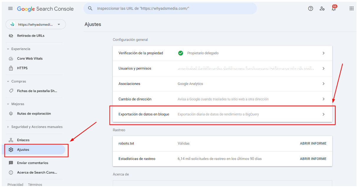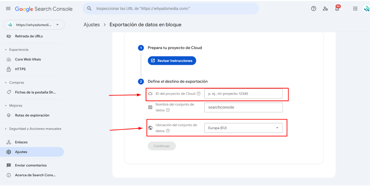 Paso 8: Configura la exportación en Google Search Console