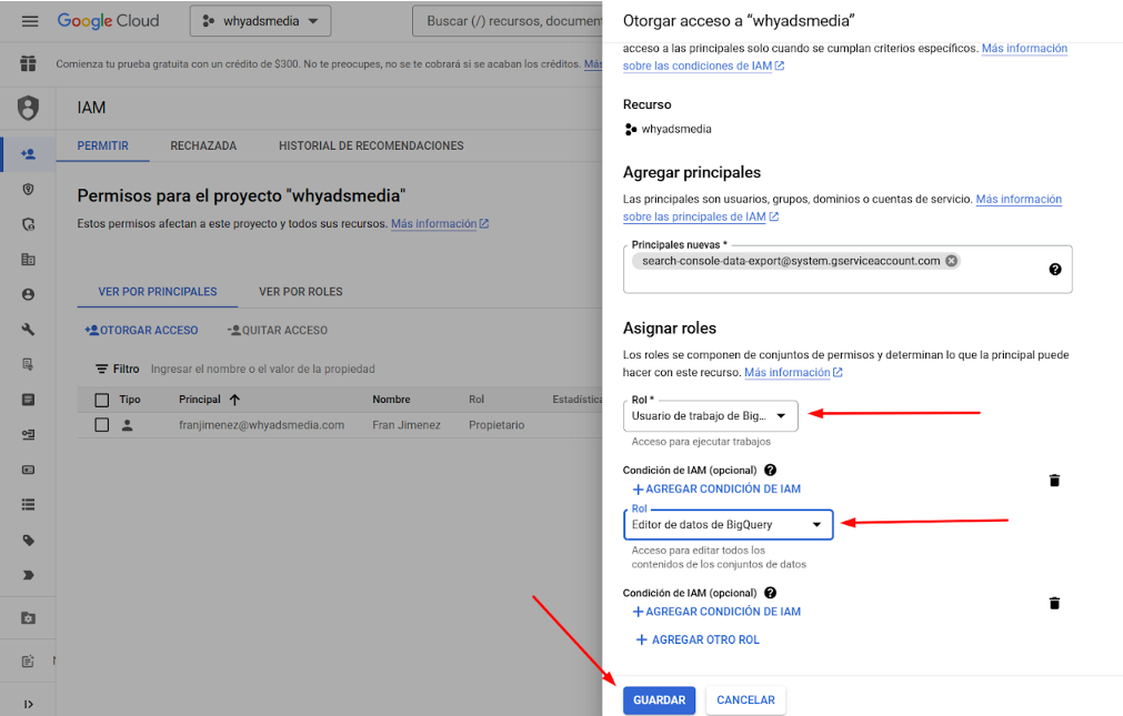 1. Usuario de Trabajo de BigQuery.